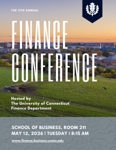 The finance faculty at the University of Connecticut School of Business invite interested researchers to submit papers to be considered for presentation and discussion at the 11th Annual University of Connecticut Finance Conference, May 12, 2026.